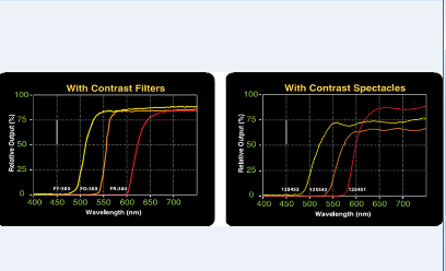 光譜圖(下圖分別為加上對(duì)比濾色板及戴上熒光增強(qiáng)眼鏡后的光譜圖)