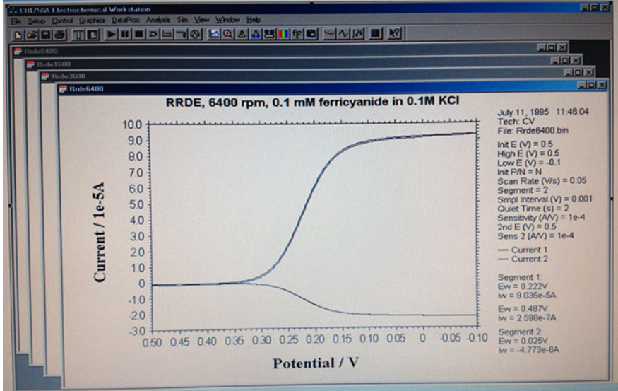 CHI700E除了允許第二工作電的電位獨(dú)立控制在恒定電位外,還允許第二工作電的電位與工作電同步掃描或階躍。雙通道同步掃描時(shí),高掃速可達(dá)10,000 V/s。雙通道同步階躍時(shí),小采樣間隔可達(dá)1微秒。由于CHI700E系列是CHI600E系列的拓展,CHI700E系列還可以配備恒電流儀(CHI760E)。CHI700E系列還允許四電體系,用于液/液界面的電化學(xué)測量。