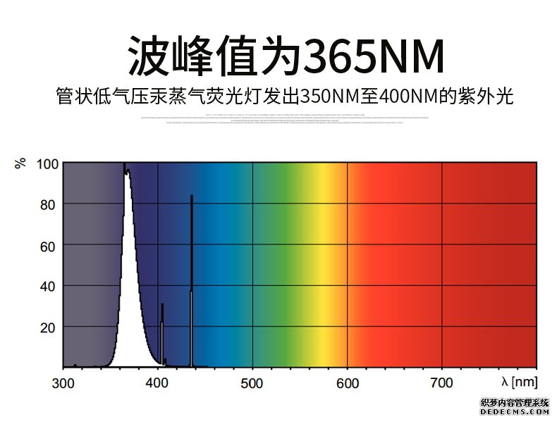 紫外線固化燈管是有反射層的UV-A熒光燈,它屬于R型反射燈系,在機(jī)械,電氣和工作狀態(tài)方面都可與別的燈互換。TL/10系列發(fā)射紫外線為UV-A波段。范圍為350nm-400nm,其峰值波長為365nm。其中UV-B/UV-A的比值為少于0.1%(UV-B:280nm-315nm)。R型(反射型)有200度的內(nèi)部反射層。內(nèi)部反射層提高了燈的效率,并且特別適合于輻射距離和燈布置較密的狀況。使用TL/10系列,燈的安裝密度可以提高(燈的中心之間的距離為30mm),這使得輻射強(qiáng)度增大,照射效率提高。